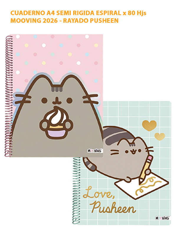 CUADERNO A4 SEMI RIGIDA ESPIRAL x 80 Hjs MOOVING 2026 - RAYADO PUSHEEN