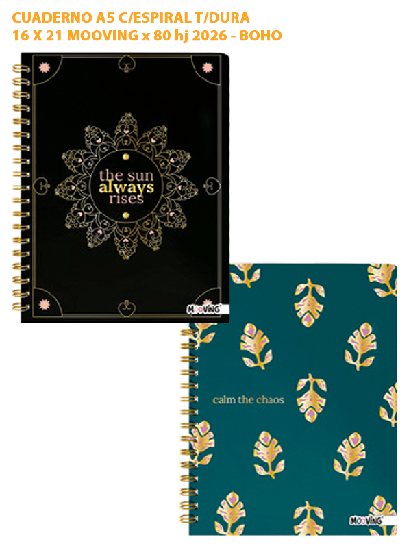 CUADERNO A5 C/ESPIRAL T/DURA 16 X 21 MOOVING x 80 hj 2026 - BOHO