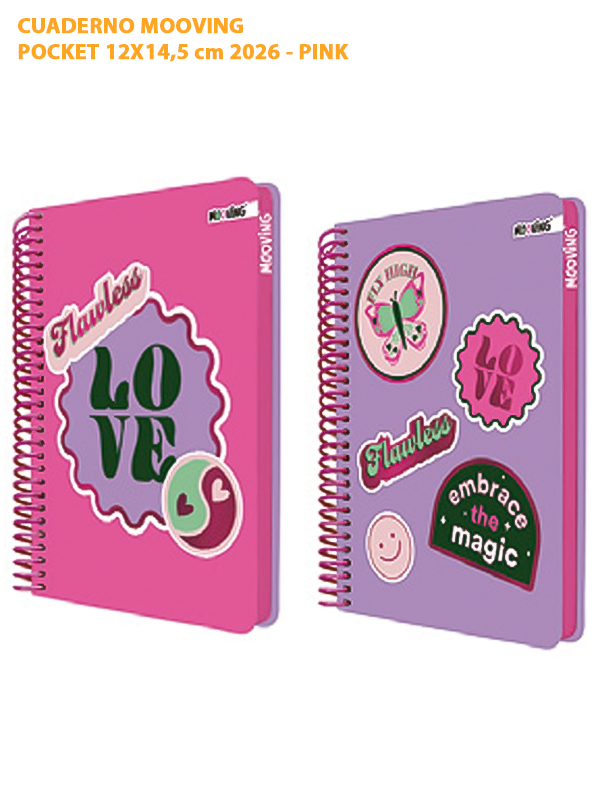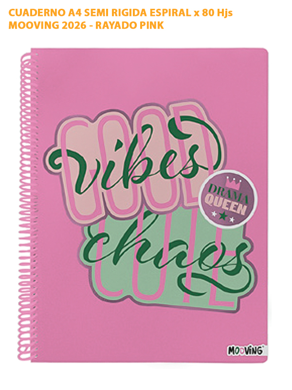 CUADERNO A4 SEMI RIGIDA ESPIRAL x 80 Hjs MOOVING 2026 - RAYADO PINK