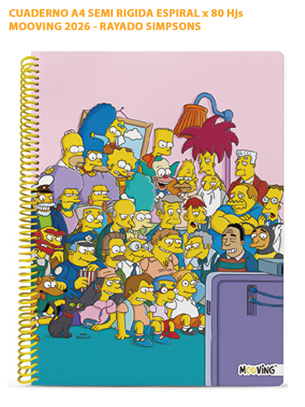 CUADERNO A4 SEMI RIGIDA ESPIRAL x 80 Hjs MOOVING 2026 - RAYADO SIMPSONS