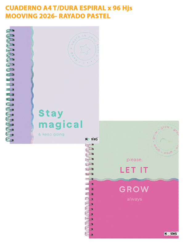 CUADERNO A4 T/DURA ESPIRAL x 96 Hjs MOOVING 2026- RAYADO PASTEL