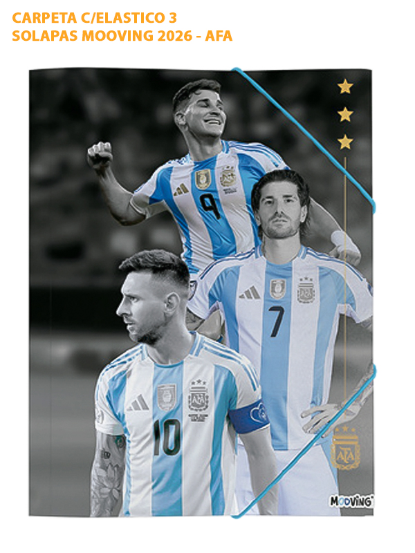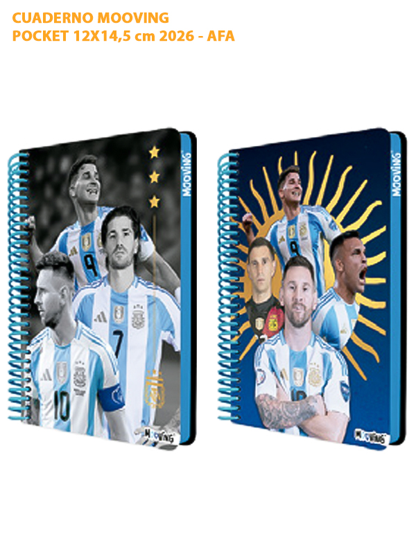 CUADERNO ESCOLAR 16X21 T/DURA MOOVING RAYADO x 48 HJ 2026 - AFA SELECCION
