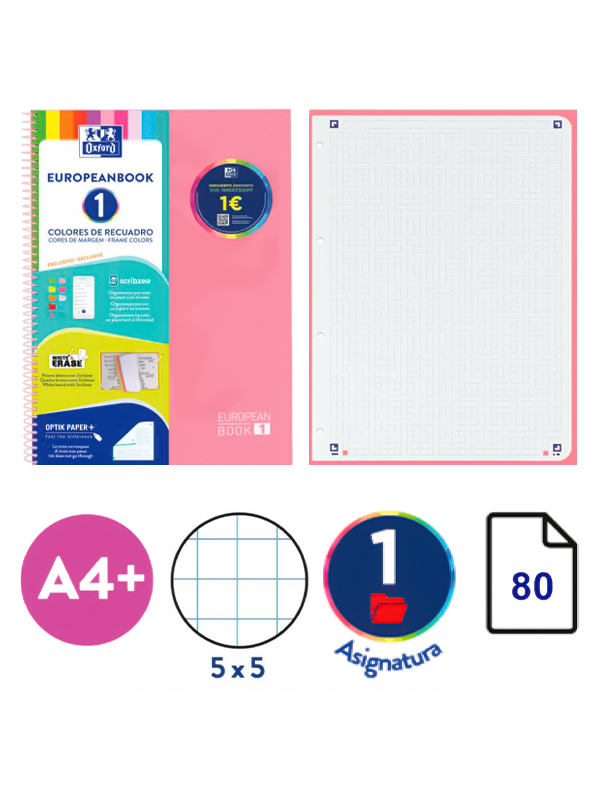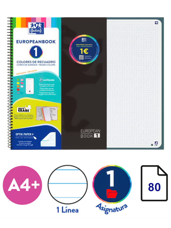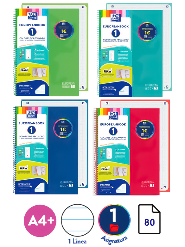 CUADERNO A4 EUROPEANBOOK 1 / x 80 Hjs / CLASSIC - RAYADA / Tapa DURA con acabado brillante