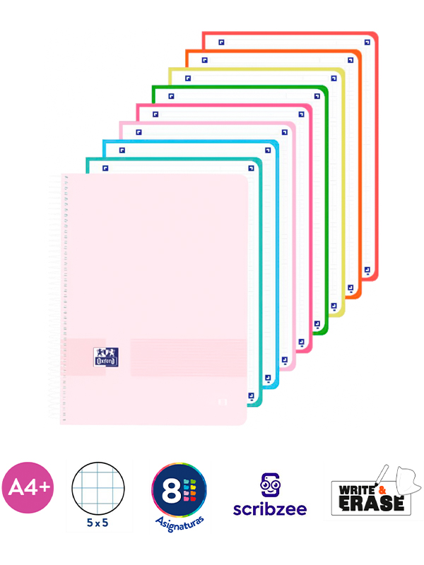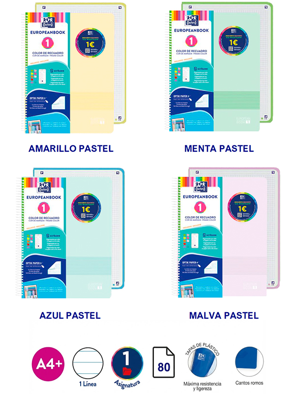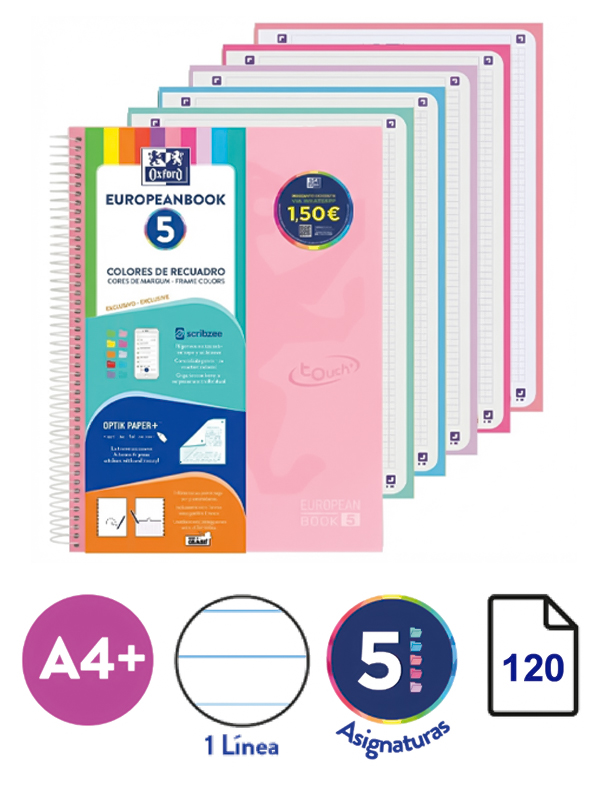 CUADERNO A4 EUROPEANBOOK 5 / x 120 Hjs / MULTIASIGNATURA PASTEL - RAYADA / Tapa DURA con tacto suave