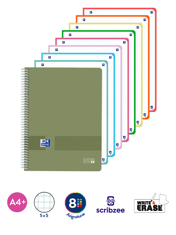 CUADERNO A4 EUROPEANBOOK 8 / x 160 Hjs / LIVE & GO - VIVOS - CUADRO / Tapa plástico opaco