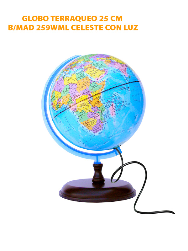 GLOBO TERRAQ. 25 CM B/MAD 259WML CELESTE CON LUZ