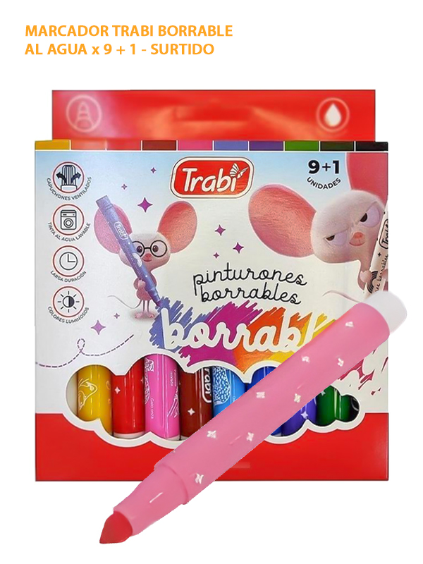 MARCADOR TRABI BORRABLE AL AGUA x 9 + 1 - SURTIDO