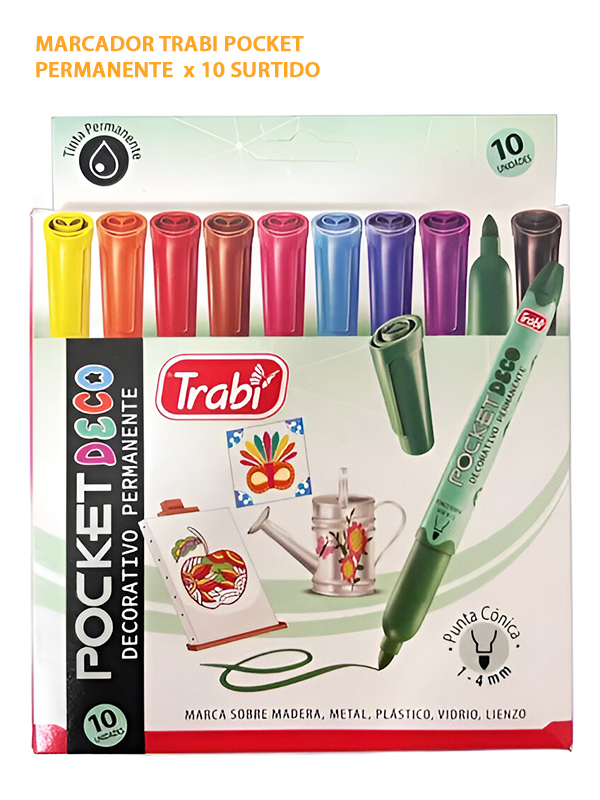 MARCADOR TRABI POCKET PERMANENTE x 10 SURTIDO