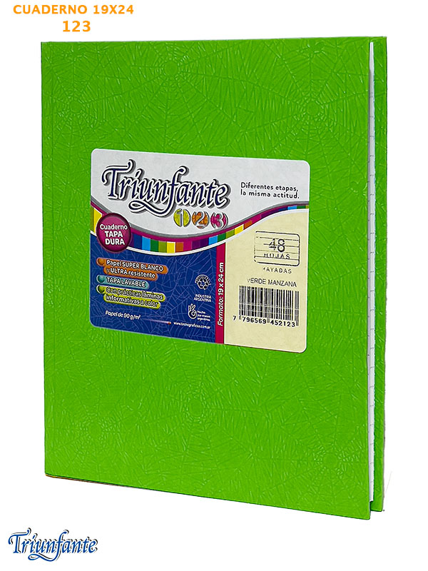 AGREGAR AL PEDIDOCUADERNO (123) TRIUNFANTE 19X23 ARAÑA X 50 ( RAYADO) VERDE MANZANA