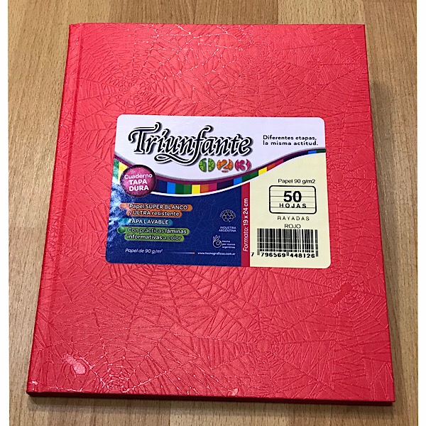 AGREGAR AL PEDIDOCUADERNO ESCOLAR TAPA DURA TRIUNFANTE ARAÑA X 50 Hojas ROJO RAYADO
