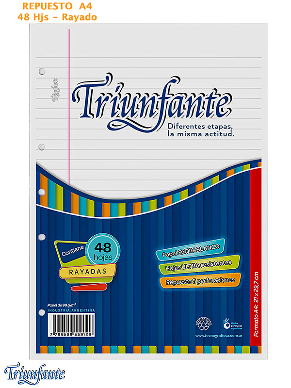 AGREGAR AL PEDIDOCUADERNO (123) TRIUNFANTE 21X27 ESPIRAL X 100 Hojas - mis Hojas - RAYADO