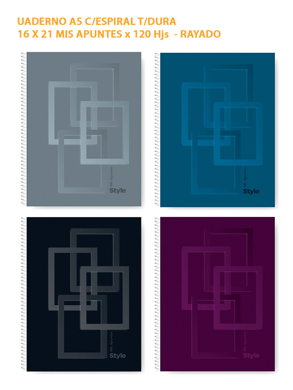 CUADERNO A5 C/ESPIRAL T/DURA 16 X 21 MIS APUNTES x 120 Hjs - RAYADO