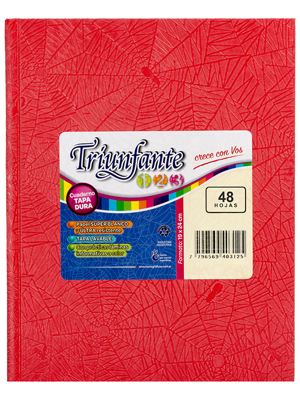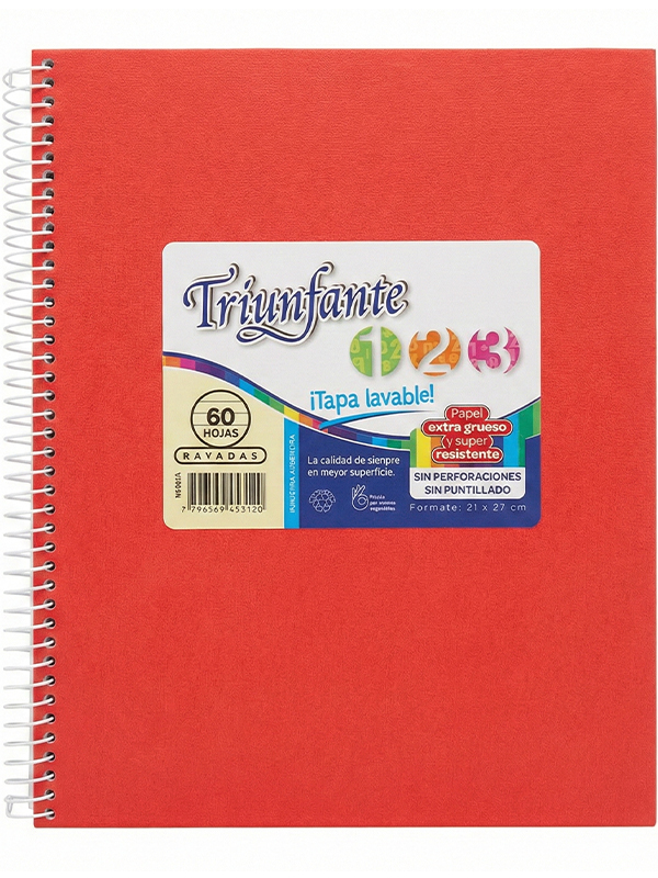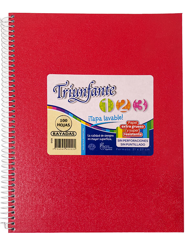 CUADERNO (123) 21X27 ARAÑA ESPIRAL x 100 TRIUNFANTE - RAYADO ROJO