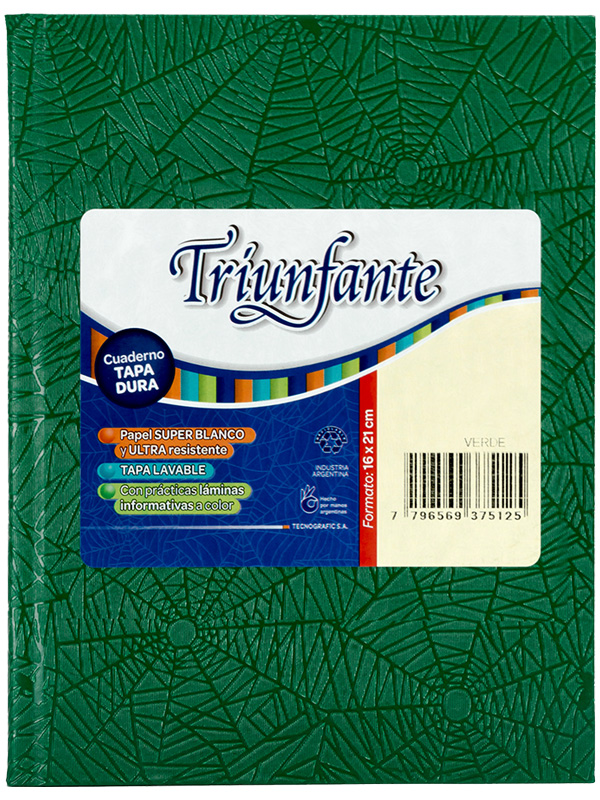 CUADERNO (123) 21X27 ARAÑA ESPIRAL x 100 TRIUNFANTE - RAYADO VERDE