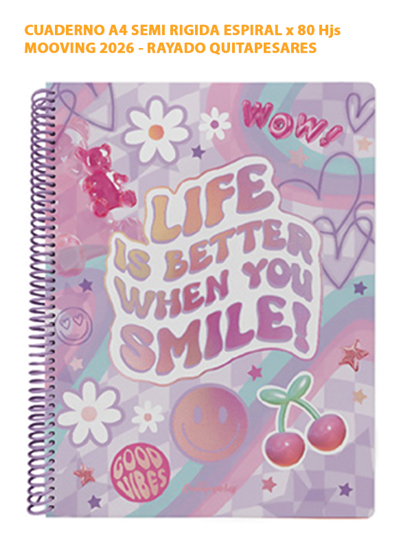 CUADERNO MOOVING C/ESPIRAL 16 X 21 - TAPA DURA X 80 HJS - RAINBOW 2024