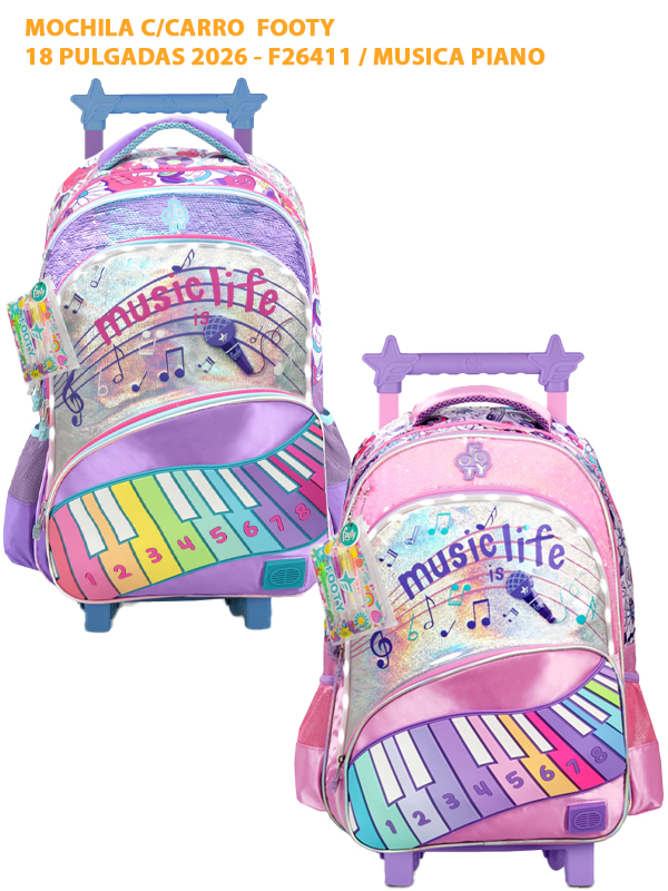 MOCHILA C/CARRO FOOTY 18 PULGADAS 2026 - F26411 / MUSICA PIANO