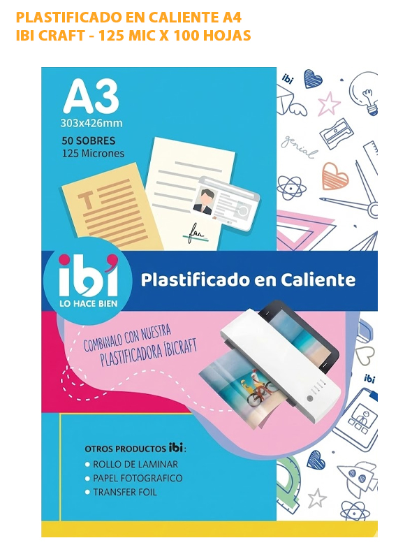 PLASTIFICADO EN CALIENTE A4 - IBI CRAFT - 125 MIC X 100 HOJAS