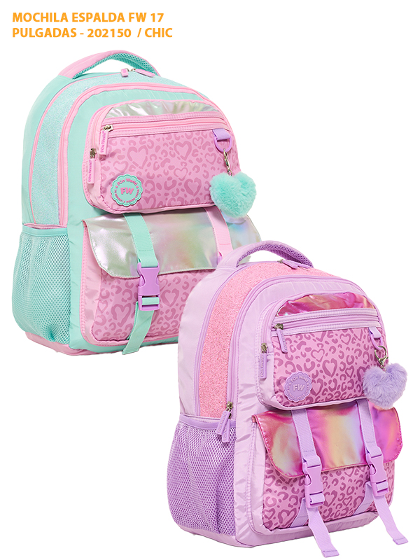 MOCHILA C/CARRO 18 PULGADAS - ELF BASE GOMA / 1 División 46 x 33 x 20 cm. Rosa